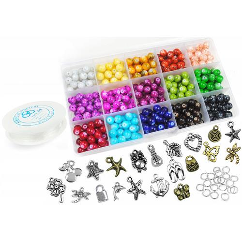 Produkt dostępny Zestawy do tworzenia biżuterii Zestaw do robienia bransoletek z koralików szklanych mix kolorów 10 zawieszek 125x65mm Brak KM06D 26,99 zł