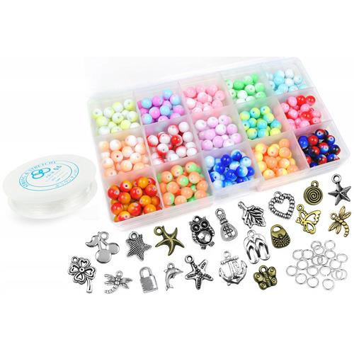 Produkt dostępny Zestawy do tworzenia biżuterii Zestaw do robienia bransoletek z koralików szklanych niebiesko-turkusowy 10 zawieszek... Brak KM04D 29,99 zł