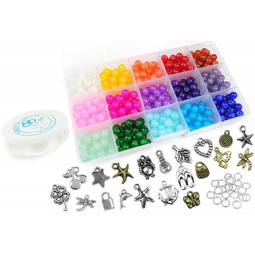 Produkt dostępny Zestawy do tworzenia biżuterii Zestaw do robienia bransoletek z koralików szklanych turkusowo-niebieski 20 zawieszek... Brak KD04D 42,00 zł