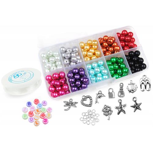 Produkt dostępny Zestawy do tworzenia biżuterii Zestaw do robienia bransoletek z koralików szklanych mix kolorów 20 zawieszek 175x100mm Brak KD06D 45,00 zł