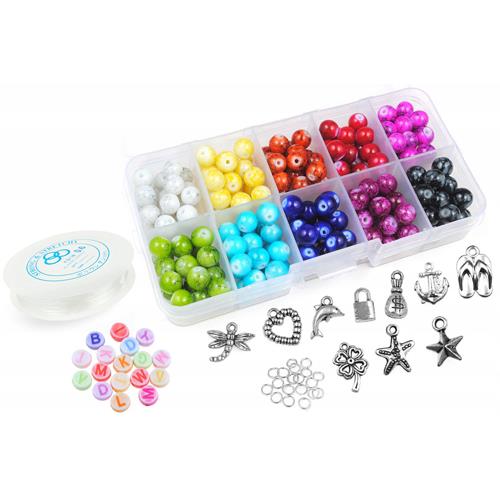 Produkt dostępny Zestawy do tworzenia biżuterii Zestaw do robienia bransoletek z koralików szklanych mix kolorów 10 zawieszek 125x65mm Brak KM06D 26,99 zł