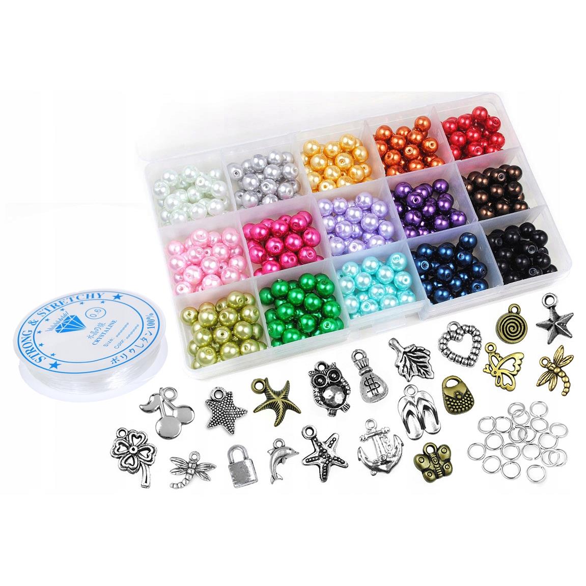 Produkt dostępny Zestawy do tworzenia biżuterii Zestaw do robienia bransoletek z koralików szklanych mix kolorów 20 zawieszek 175x100mm Brak KD06D 45,00 zł