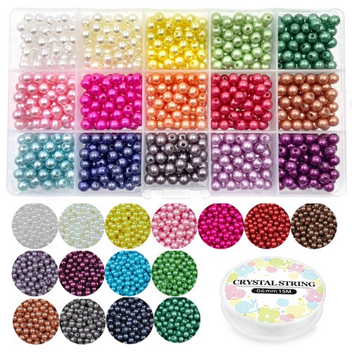 Zestaw koraliki perełki perły akryl 6mm gumka do bransoletek 1200szt