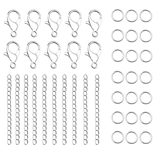 Zestaw zapięcia karabińczyki ogniwka kółeczka łańcuszek przedłużka srebrne 40szt
